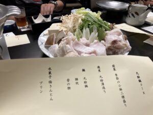 見学のあとは、和歌山の名物「九絵鍋(くえなべ)」を堪能。
